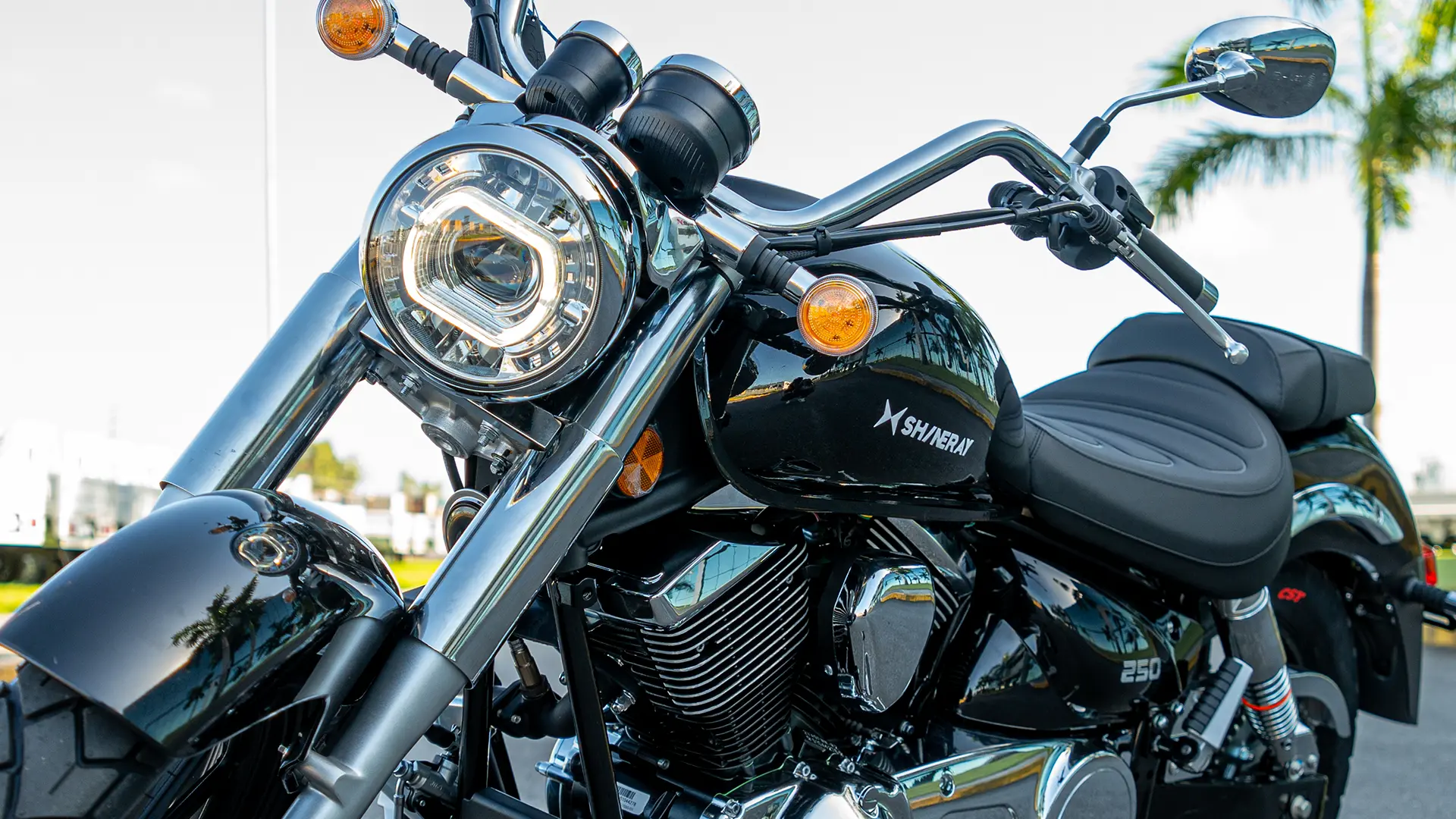 Conheça a Denver: Para quem valoriza cada quilometro da viagem. A Denver 250 une conforto e estilo em um modelo clássico e acabamentos cromado. O modelo possui motor bicilíndrico em V, freios à disco com sistema ABS de dois canais e sistema de injeção eletrônica.