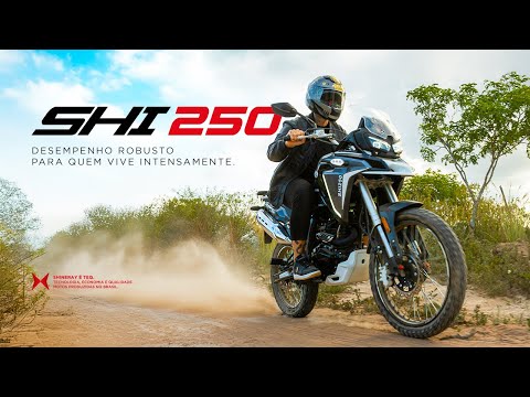 Conheça a SHI 250: A SHI 250 é a escolha ideal para quem busca aventura dentro e fora da cidade. Com motor de 250cc, ela entrega força, versatilidade e robustez para encarar qualquer terreno.